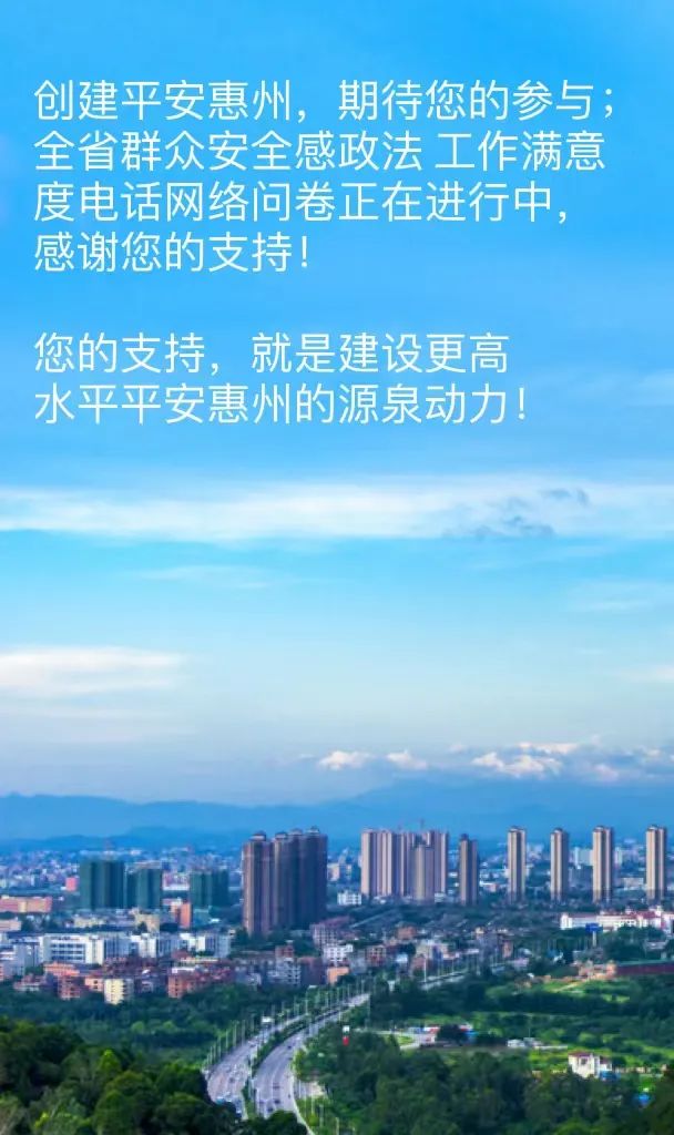 平安惠州 | 全省群眾安全感政法工作滿意度調(diào)查正在進行中,感謝您的支持!