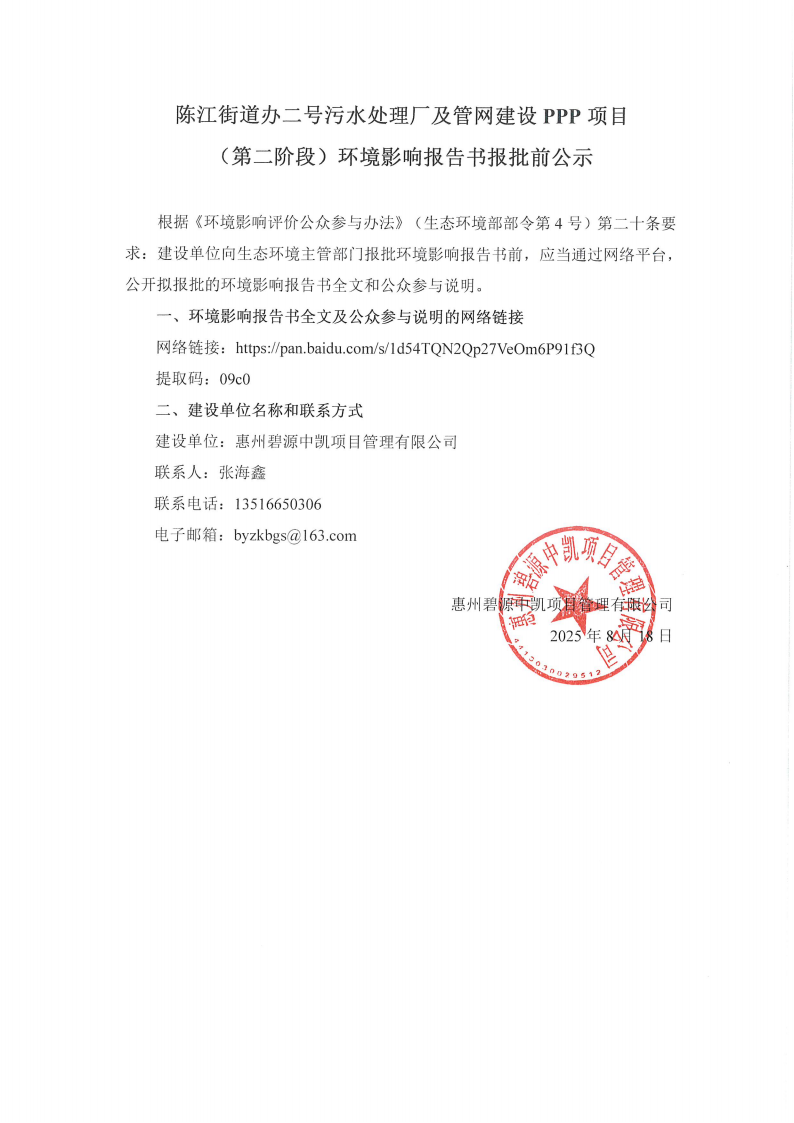 陳江街道辦二號(hào)污水處理廠及管網(wǎng)建設(shè)PPP項(xiàng)目(第二階段)環(huán)境影響報(bào)告書(shū)報(bào)批前公示