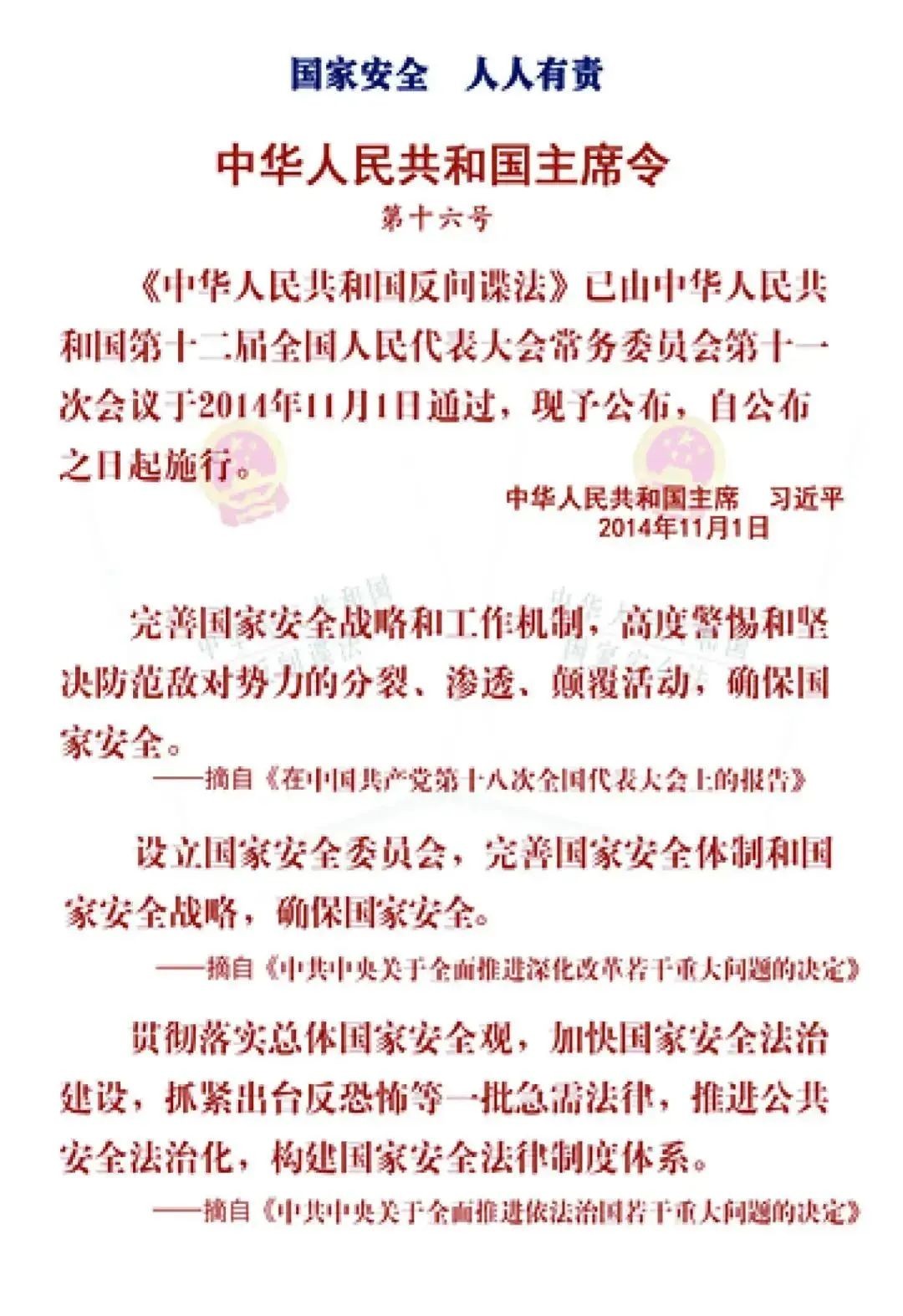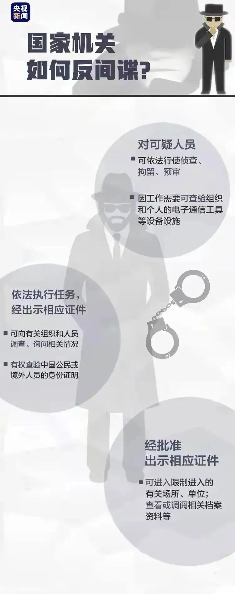 《反間諜法》既為反間諜工作提供了最基本的法律依據(jù),又為在隱蔽戰(zhàn)線貫徹落實(shí)總體國(guó)家安全觀作出了具體的制度規(guī)劃,進(jìn)一步推進(jìn)我國(guó)反間諜工作的規(guī)范化、制度化和法治化,為全面推進(jìn)依法治國(guó),發(fā)揮不可替代的重要作用。讓我們通過下面一組圖全面了解《反間諜法》。